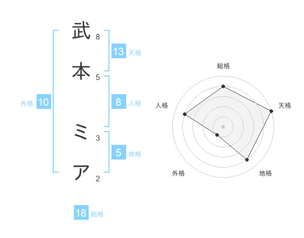 武本 ミアさんの天格は13画の5点!