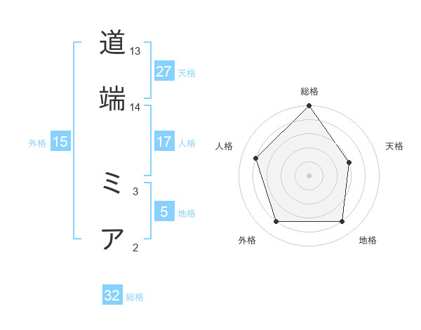 道端 ミアさんの外格は15画の4点!