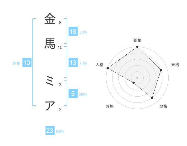 金馬 ミアさんの総格は23画の5点!