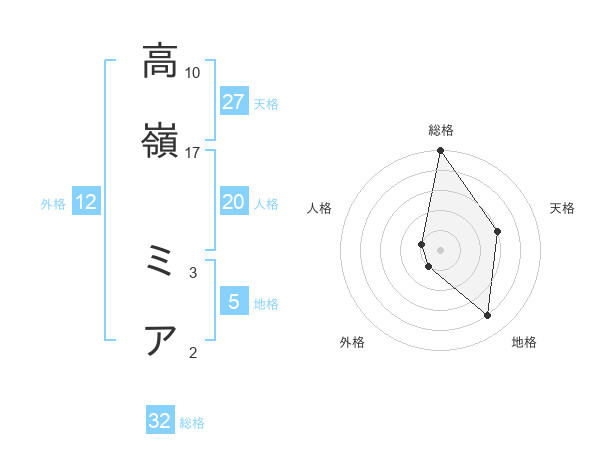 高嶺 ミアさんの天格は27画の3点!