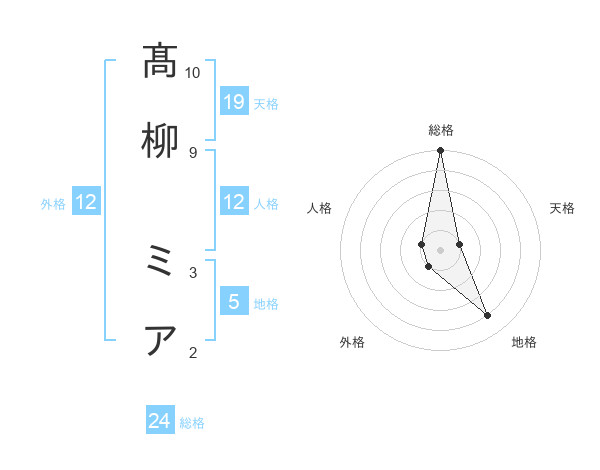 髙柳 ミアさんを姓名の画数から五運を鑑定