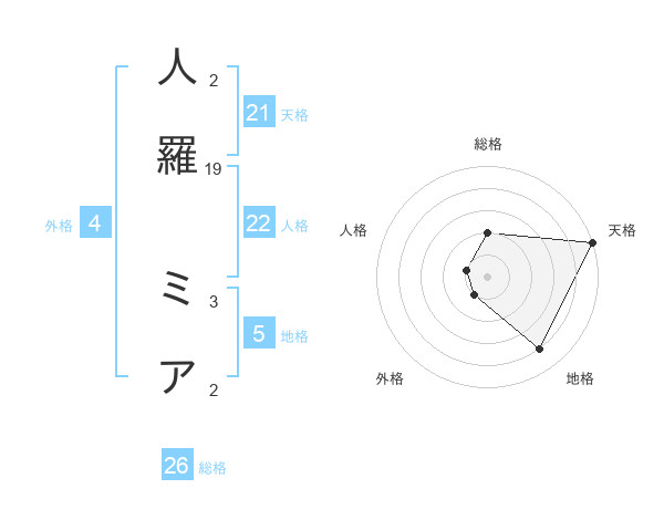 人羅 ミアさんの総格は26画の2点!
