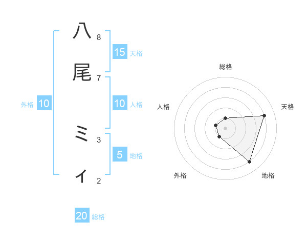 八尾 ミィさんの総格は20画の1点!