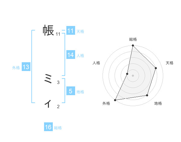 帳 ミィさんの総格は16画の5点!