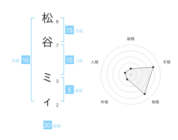 松谷 ミィさんの総格は20画の1点!