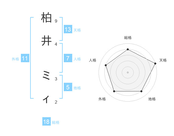柏井 ミィさんを姓名の画数から五運を鑑定