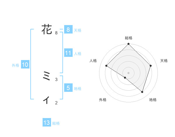 花 ミィさんの総格は13画の5点!