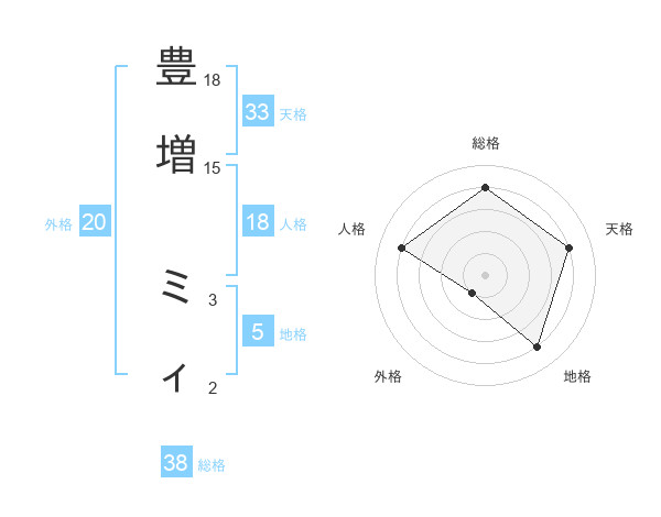 豊増 ミィさんの天格は33画の4点!