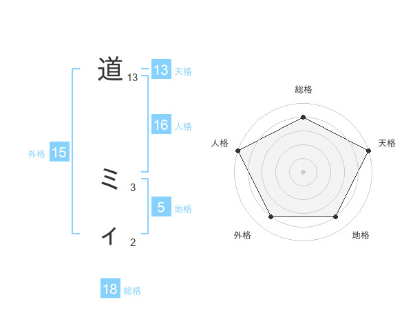 道 ミィさんの天格は13画の5点!