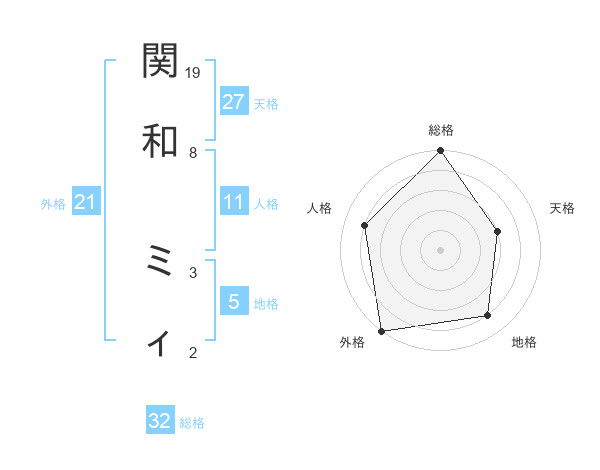 関和 ミィさんの総格は32画の5点!