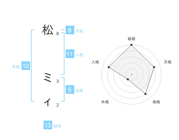 松 ミィさんの総格は13画の5点!