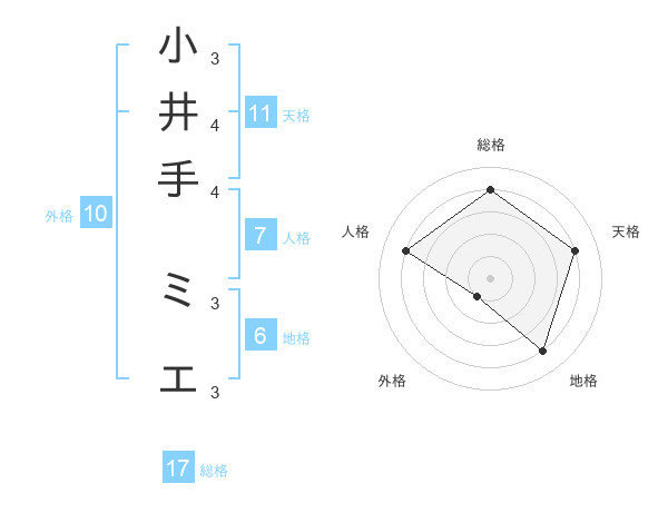 小井手 ミエさんを姓名の画数から五運を鑑定