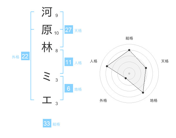 河原林 ミエさんを姓名の画数から五運を鑑定