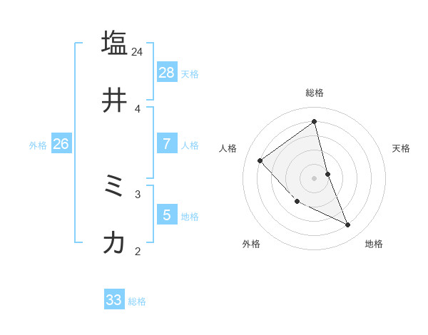 塩井 ミカさんを姓名の画数から五運を鑑定