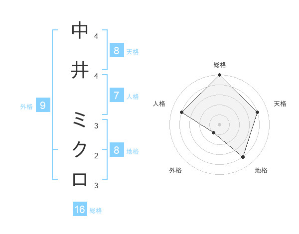 中井 ミクロさんを姓名の画数から五運を鑑定