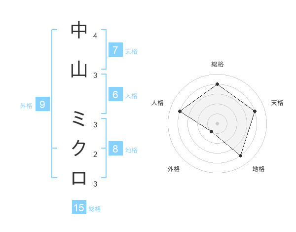 中山 ミクロさんを姓名の画数から五運を鑑定