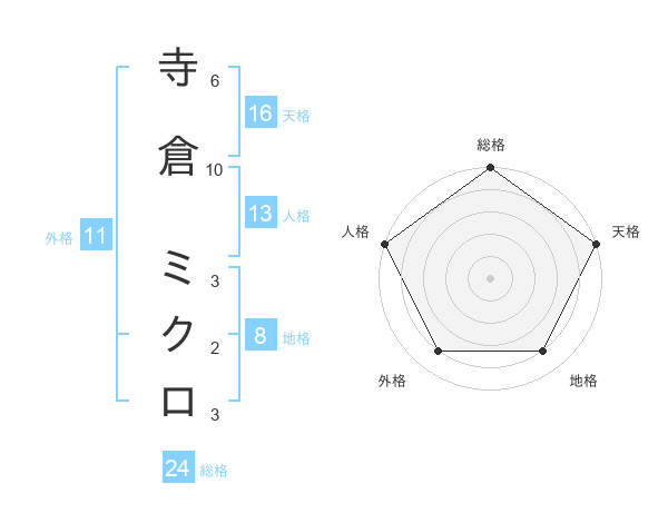 寺倉 ミクロさんを姓名の画数から五運を鑑定