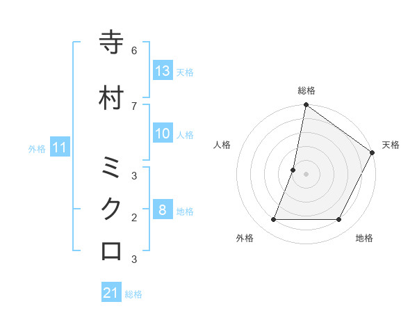 寺村 ミクロさんの天格は13画の5点!