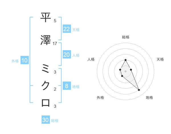 平澤 ミクロさんの天格は22画の1点!