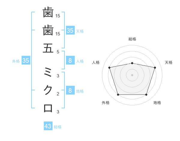 歯歯五 ミクロさんの総格は43画の2点!