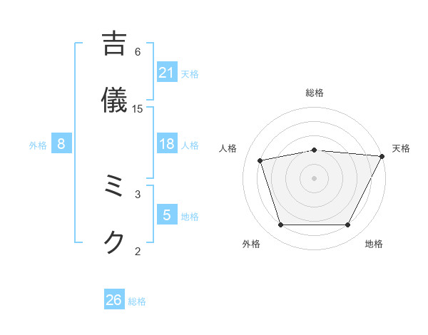 吉儀 ミクさんの総格は26画の2点!