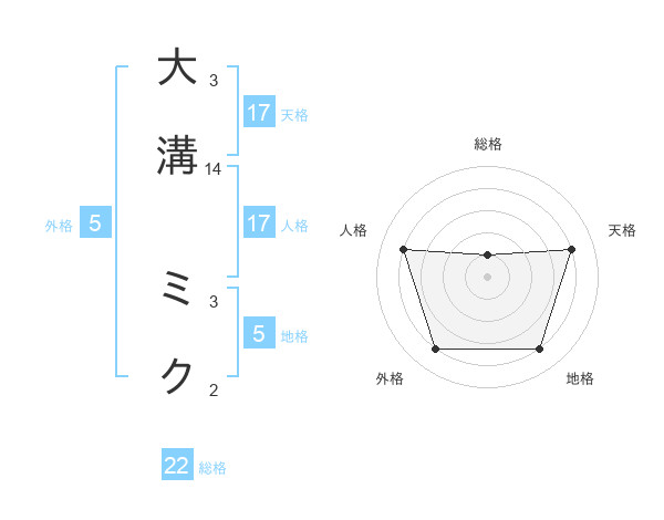 大溝 ミクさんの天格は17画の4点!