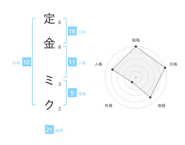 定金 ミクさんの地格は5画の4点!