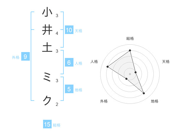小井土 ミクさんの総格は15画の4点!