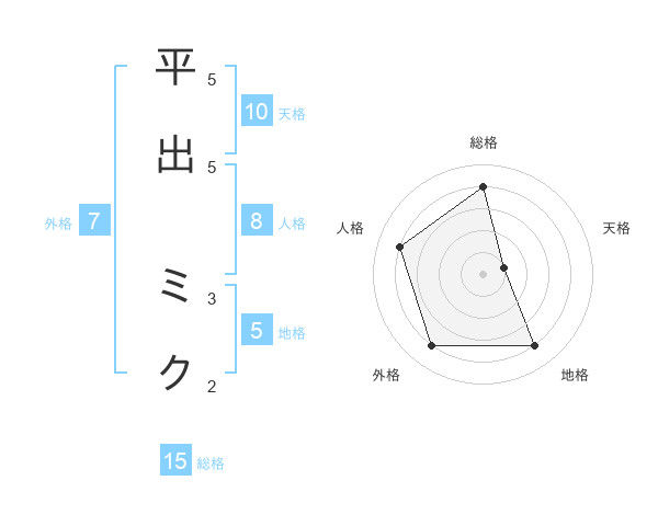 平出 ミクさんの総格は15画の4点!
