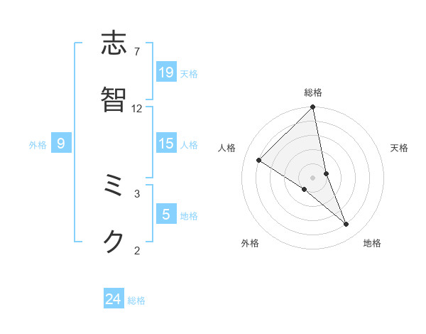 志智 ミクさんの総格は24画の5点!
