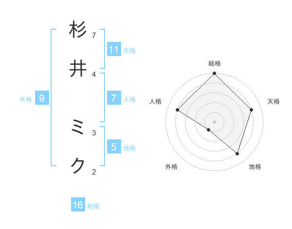 杉井 ミクさんを姓名の画数から五運を鑑定