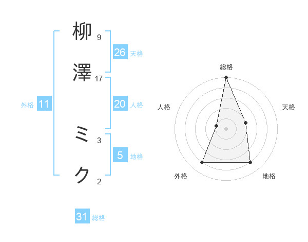 柳澤 ミクさんの総格は31画の5点!
