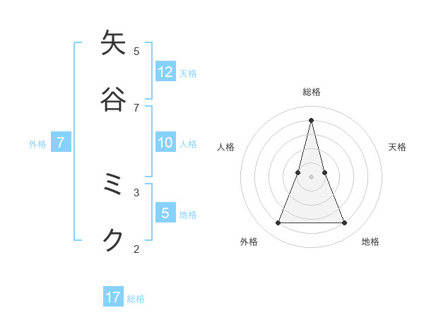 矢谷 ミクさんの総格は17画の4点!