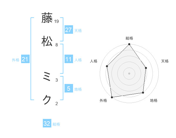 藤松 ミクさんの総格は32画の5点!