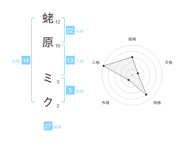 蛯原 ミクさんを姓名の画数から五運を鑑定