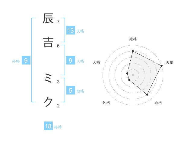 辰吉 ミクさんの天格は13画の5点!