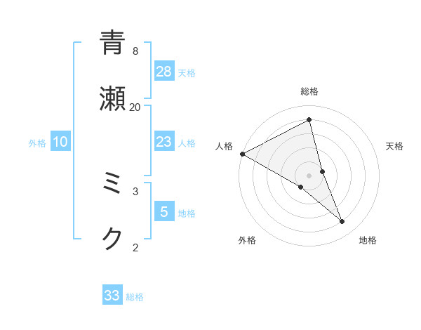 青瀬 ミクさんの総格は33画の4点!