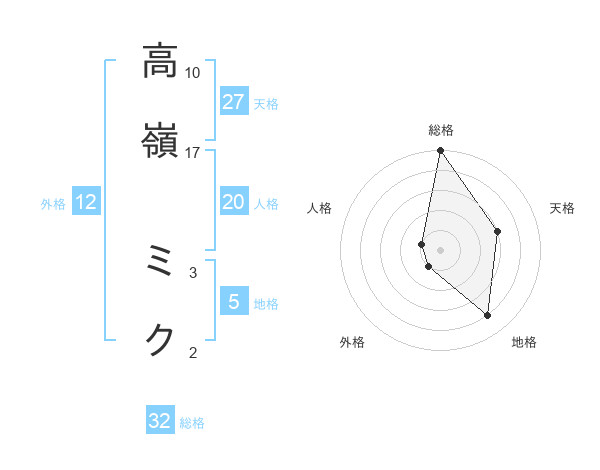 高嶺 ミクさんの総格は32画の5点!