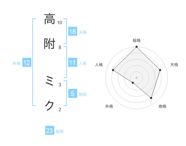 高附 ミクさんの総格は23画の5点!