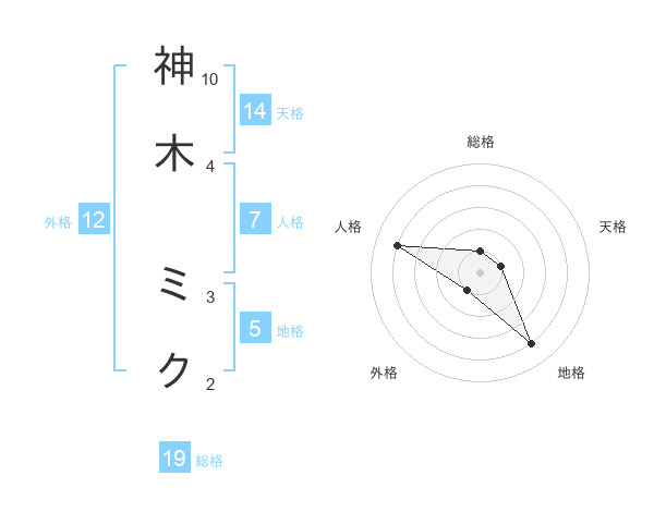 神木 ミクさんの総格は19画の1点!