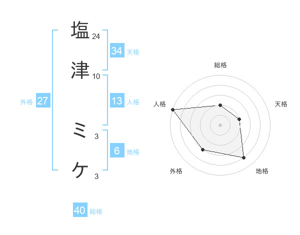 塩津 ミケさんを姓名の画数から五運を鑑定