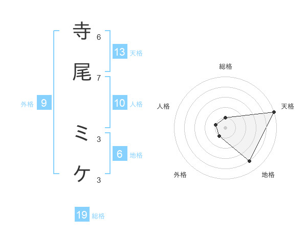 寺尾 ミケさんの天格は13画の5点!