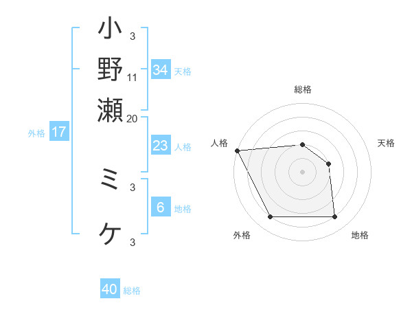 小野瀬 ミケさんの外格は17画の4点!