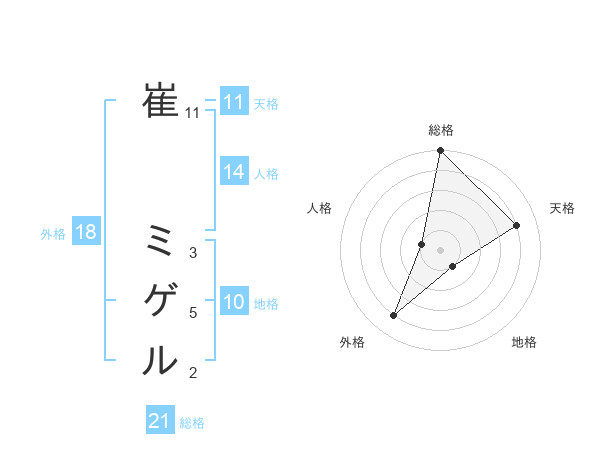 崔 ミゲルさんの総格は21画の5点!