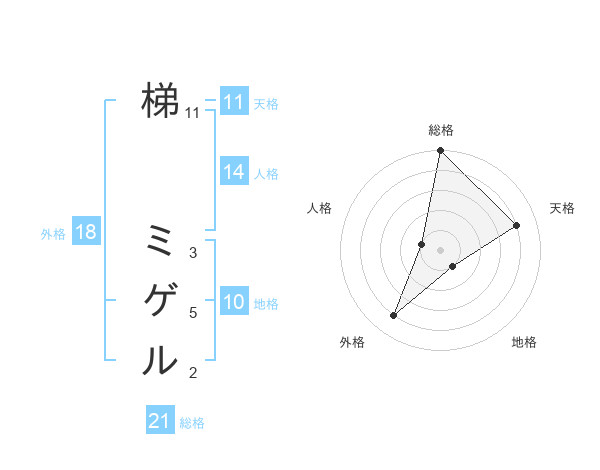 梯 ミゲルさんの総格は21画の5点!
