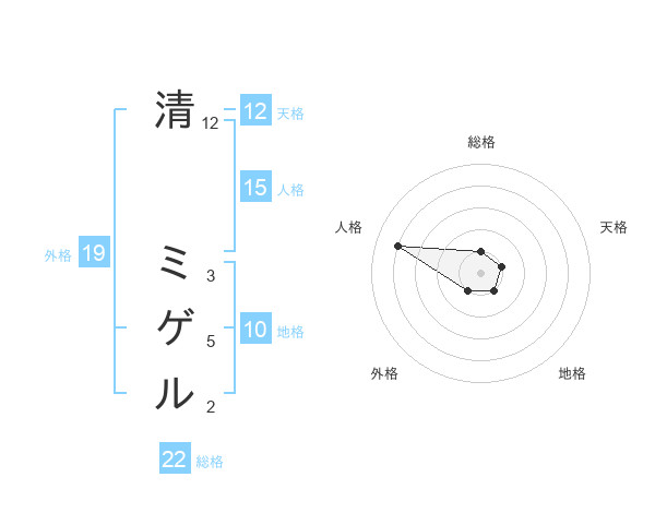 清 ミゲルさんを姓名の画数から五運を鑑定