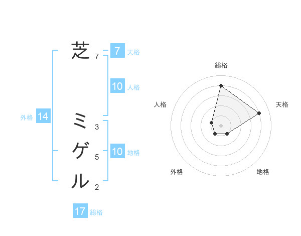 芝 ミゲルさんの総格は17画の4点!