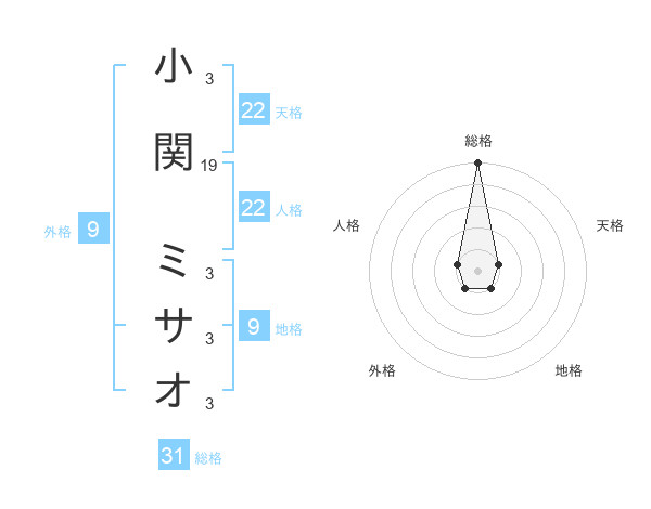 小関 ミサオさんを姓名の画数から五運を鑑定
