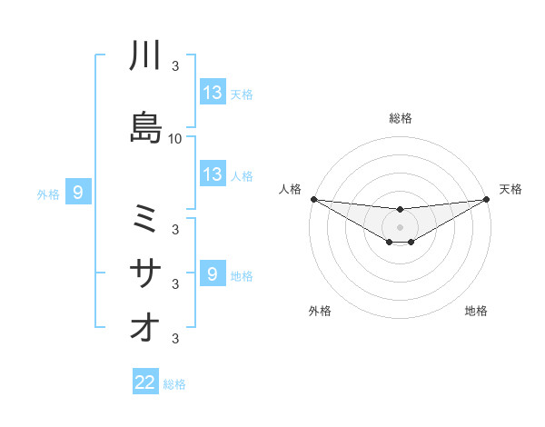 川島 ミサオさんを姓名の画数から五運を鑑定