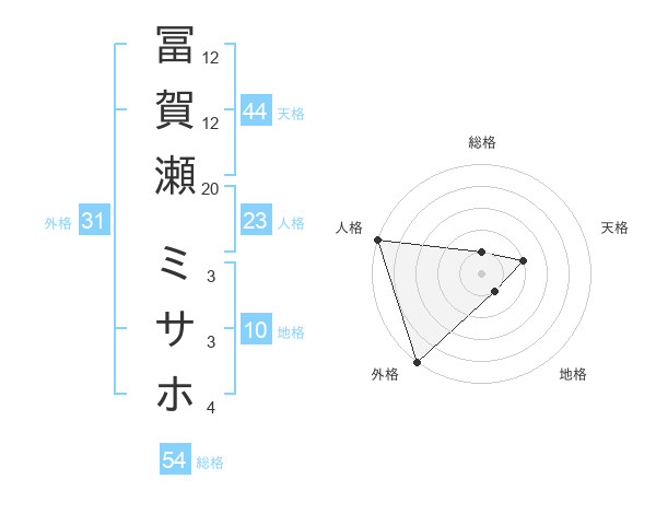 冨賀瀬 ミサホさんの外格は31画の5点!